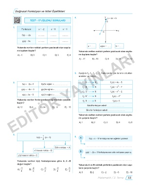 5. Aşağıda f , f , f , f , f fonksiyonları ve tanımlı oldukları