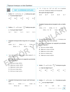 TEST - 19 (ÖĞRENME ÇIKTILARI) tanımlı olan f fonksiyonu doğrusal bir fonksiyondur.