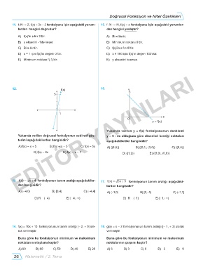 11. f: N → Z, f(x) = 3x - 2 fonksiyonu için aşağıdaki yorum- 15. f: N → N, f(x) = x fonksiyonu için aşağıdaki yorumlar-