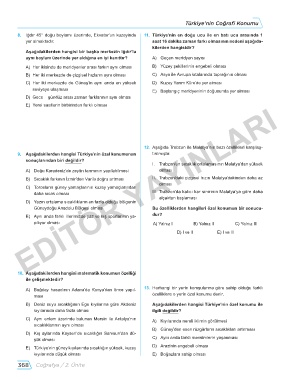 9. Aşağıdakilerden hangisi Türkiye’nin özel konumunun tırılmıştır�