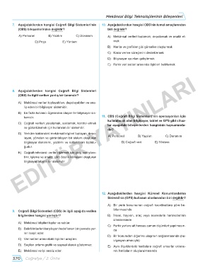 bilgisayar donanımı, yazılımı ve kullanıcıları toplulu- D) Coğrafi veri E) Yöntem
