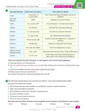 İç Asya’da Hayat / Türk Göçleri / Ordu - Millet: Türkler BECERİ TEMELLİ TEST 3