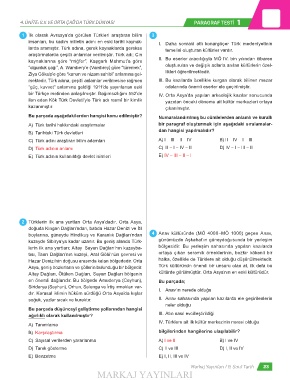 4. ÜNTE: LK VE ORTA ÇAĞ’DA TÜRK DÜNYASI PARAGRAF TESTİ 1