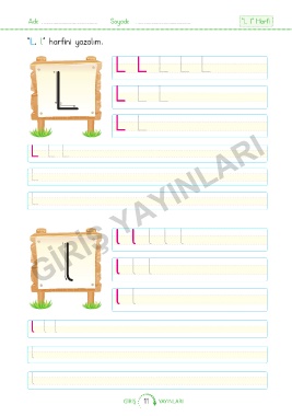 Adı: Soyadı: “L l” Harfi “L, l” harfini yazalım. L L L L L L L L L L L L L L L L GİRİŞ YAYINLARI l l l l l l l l l l l l l l l l GİRİŞ 11 YAYINLARI