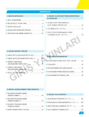 (BİLGİLENDİRİCİ METİNLER) - I . . . . . . . . . . . . . . . . . . 36 ◗ DİVAN ŞİİRİ . . . . . . . . . . . . . . . . . . . . . . . . . . . . . . . . . . . 87