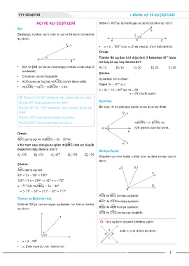 TYT GEOMETRİ 1. BÖLÜM: AÇI VE AÇI ÇEŞİTLERİ