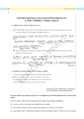 Yukarıda verilen yazılı kâğıdında öğrencinin cevaplarıyla ilgili olarak aşağıdakilerden hangisi söyle-