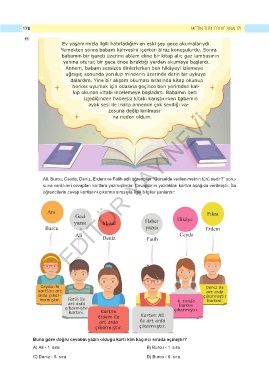 Ali, Burcu, Ceyda, Deniz, Erdem ve Fatih adlı öğrenciler “Görselde verilen metnin türü nedir?” soru-