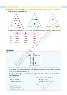 18 Aşağıdaki üçgenlerde harflerle belirtilen bölümlere, çevresindeki sözcük veya söz gruplarının çağrıştırdığı en