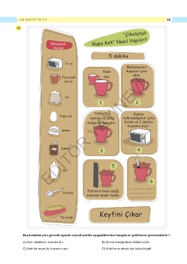 C) Keki bir bıçak ile kupadan ayır. D) Keki fırına atmak için kaba boşalt.