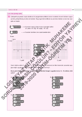Kareli kâğıtta verilen 1. şekildeki (–3, –1) noktasına yukarıdaki bloklarla belirtilen hareketler yukarıdan aşa-