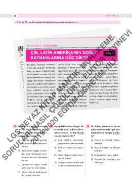 13 Ekvador’un Amazon Orman- 14 Aşağıdakilerden hangisi bu 15 Bir haber yazısından alınan