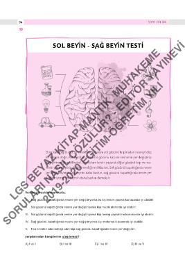 SOL BEYİN - SAĞ BEYİN TESTİ