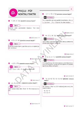İpucu B�r sayının (+)’lısı �le (-)’l�s� toplandığında sonuç her