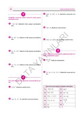 14. 5y 8y− 2 − 3y �fades�n� ortak çarpan parantez�ne