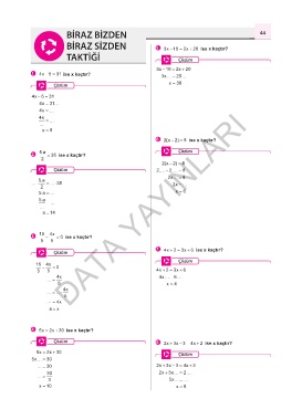 BİRAZ SİZDEN 5. 3x 10− = 2x 20+ �se x kaçtır?