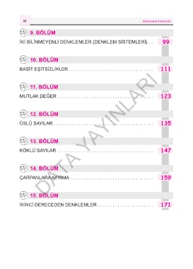 İKİNCİ DERECEDEN DENKLEMLER . . . . . . . . . . . . . . . . . . . . . . 171