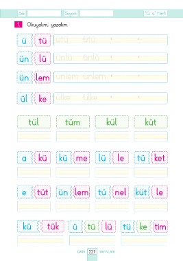 Adı: Soyadı: “Ü, ü” Harfi 1. Okuyalım, yazalım. ü tü ütü ütü ün lü ünlü ünlü ün lem ünlem ünlem ül ke ülke ülke tül tüm kül küt a kü kü me lü le tü ket e tüt ün lem tü nel küt le kü tük ü tü lü tü ke tim DATA 229 YAYINLARI