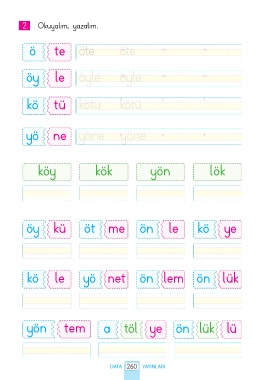 2. Okuyalım, yazalım. ö te öte öte öy le öyle öyle kö tü kötü kötü yö ne yöne yöne köy kök yön lök öy kü öt me ön le kö ye kö le yö net ön lem ön lük yön tem a töl ye ön lük lü DATA 260 YAYINLARI