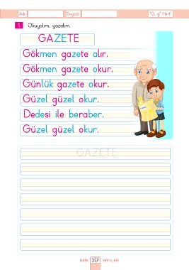 Adı: Soyadı: “G, g” Harfi 1. Okuyalım, yazalım. GAZETE Gökmen gazete alır. Gökmen gazete okur. Günlük gazete okur. Güzel güzel okur. Dedesi ile beraber. Güzel güzel okur. GAZETE DATA 357 YAYINLARI