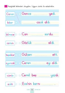 2. Aşağıdaki kelimeleri okuyalım. Uygun cümle ile eşleştirelim.