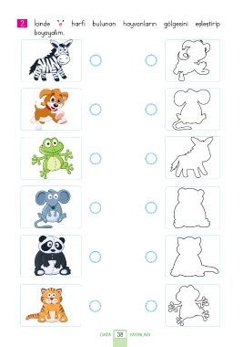 2. İçinde “e” harfi bulunan hayvanların gölgesini eşleştirip boyayalım. DATA 38 YAYINLARI