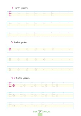 4. “E” harfini yazalım. E E E E E E E E E E E E E E E 5. “e” harfini yazalım. e e e e e e e e e e e e e e e 6. “E e” harfini yazalım. E e E e E e E e E e E e E e E e E e E e E e E e E e E e DATA 44 YAYINLARI