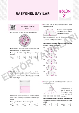 2 Ufuk 2 litrelik bir su şişesinden kaç litre içmek iste- E) 1 1