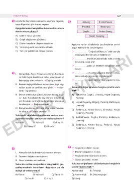 Yukarıda verilen oluşumların hangilerinin ger- Yukarıda coğrafyanın bölümlerinden hangisinin